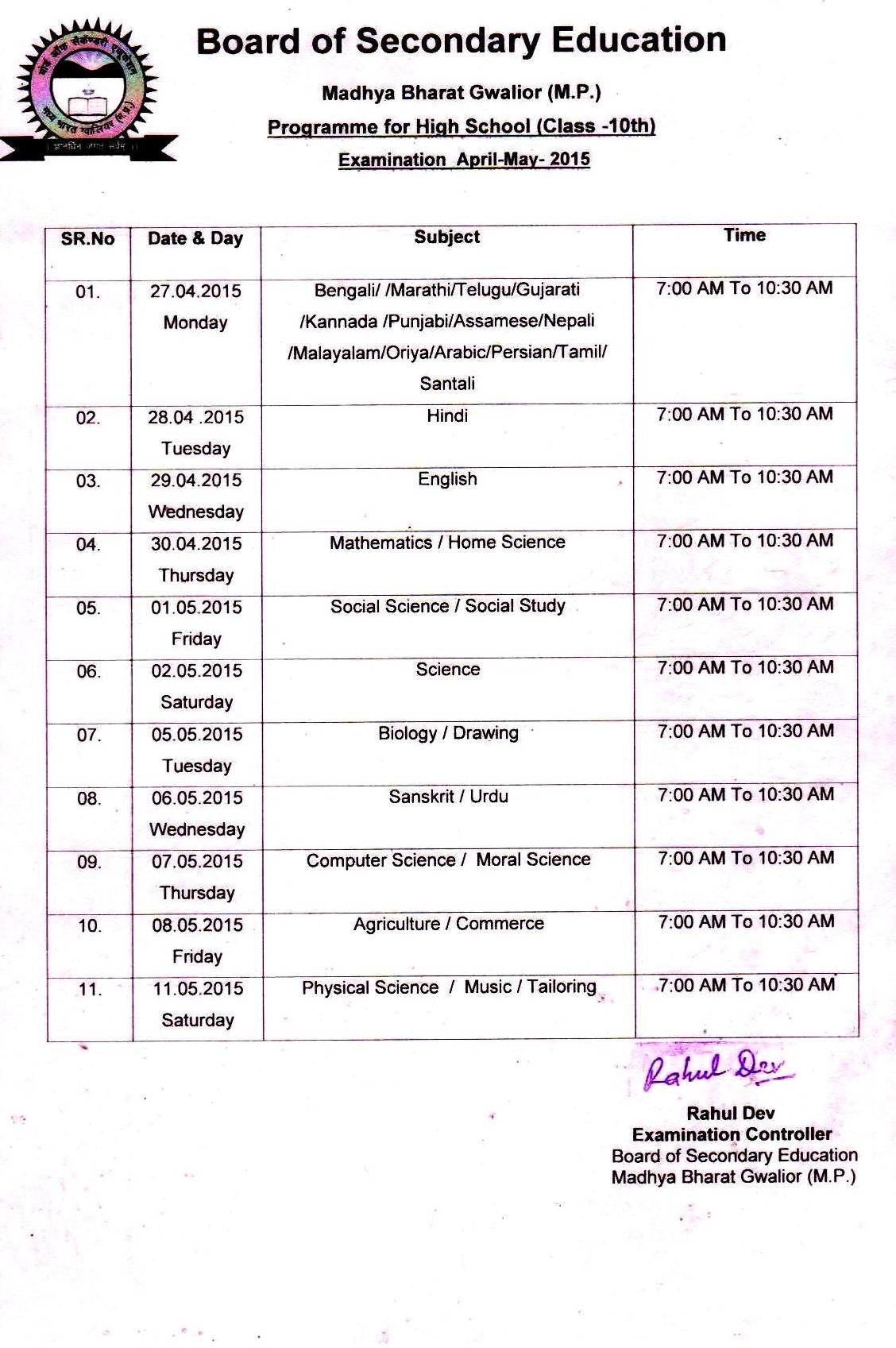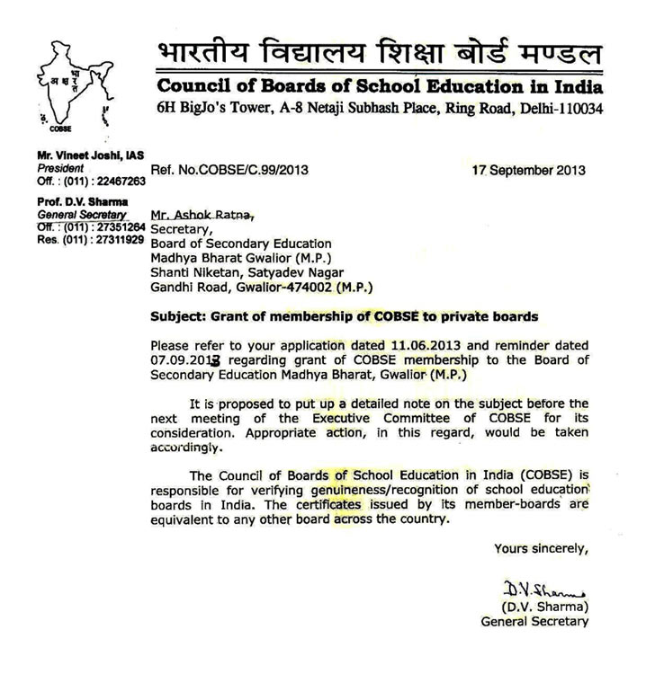 Board of Secondary Education Madhya Bharat Gwalior (M.P.) is an unique Board and